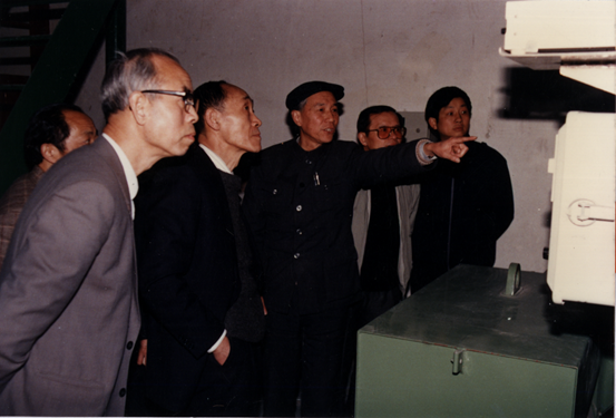( 1990年,郁铭芳(右三)参加上海合成纤维研究所“丙纶喷丝直接成布”项目鉴定会,左二为纺织工业部副部长何正璋) 1991年 6月14日,组织领导的“纺丝直接成布技术产品”获纺织部“七五”计划期间优秀新产品奖。 9月4日,以第一作者身份撰写的“聚丙烯纺粘法非织造布生产工艺的研究”论文,获中国纺织工程学会组织评选的第二届陈维稷优秀论文二等奖。 1994年 6月15日,“年产7万吨聚酯项目”一次投产成功,达到日产240吨聚酯切片的生产能力,实现当年投产、当年还贷、当年出口、当年盈利。