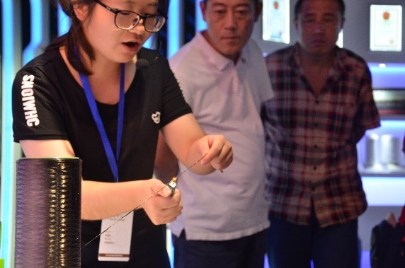 讲解员们先为大家介绍了重点实验室的科研历史和科研地位,使大家初步了解了BETVICTOR在服务传统化学纤维工业升级改造中发挥着生力军的作用,随后又介绍了成果展示室中陈列的涤纶、锦纶、碳纤维等纤维材料,并表示公司开展了在通用纤维材料多功能、纳米结构纤维、低维材料结构调控与功能化的研究,并攻克了多项行业共性核心技术。以及通过例举生活中简单易懂的列子详细的介绍了聚乙烯缆绳,防弹衣,隔热消防服等等成果背后的科技含量,让大家感受到了科学的魅力。