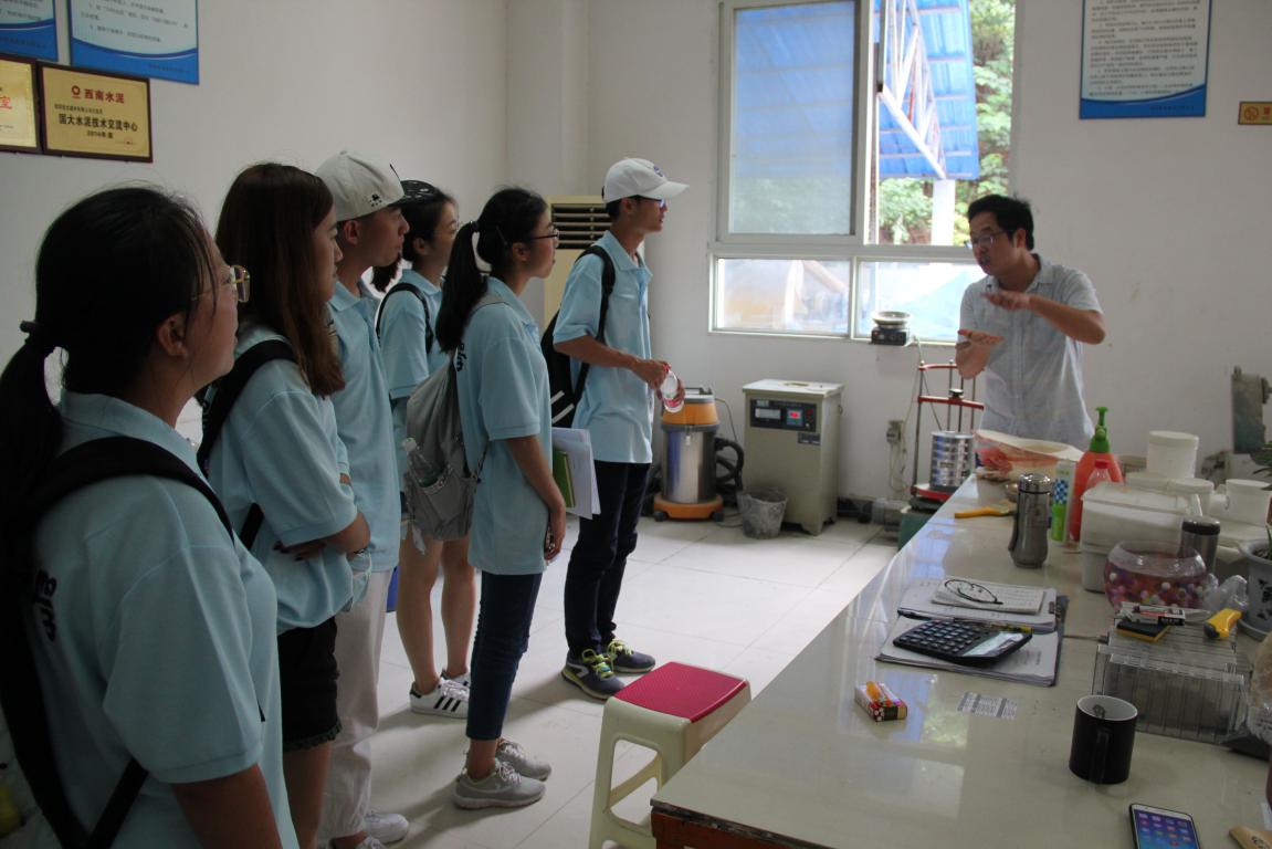 围绕着“建材革新,同探材料科学”的实践主题,实践团来到了位于绵阳市丰谷镇的绵阳锐龙建材有限公司进行为期两天的参观学习及实践交流学习。首先,研发部主任尹主任带实践团同学参观了实验室,向同学们详细介绍了砌筑砂浆,抹灰砂浆和地面砂浆的成分以及区别,不同用途的砂浆成分比例及相关材料性能。然后,尹主任带领实践团同学们参观了放满砂浆砖块的养护房(温度19-21℃,湿度≥90%),养护房是用来防止水泥砂浆防水层早期脱水,产生干缩裂缝导致渗水,在水泥砂浆终凝后进行养护的实验室房间。随后实践团成员经尹主任介绍了解了纤维素醚及聚乙烯纤维,并动手操作感受材料科学的独特魅力。