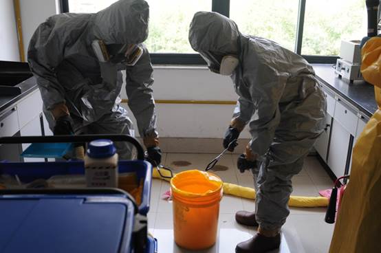 安全培训结束后,公司党委书记戴蓉宣布实验室丙酮泄漏安全处置应急演练开始。应急演练包括实验室应急人员职责,危险化学品泄漏事件发生后的上报机制,人员撤离疏散流程,泄漏现场隔离处置流程,应急处置器材和防护设备使用方法,应急结束总结报告及处置方案等。演练结束之后,屈俊勋老师现场解答了观摩师生提出的问题。来自BETVICTOR研究生一年级的员工陈纤表示:“不同于以往的安全讲座,这次参演的机会使我深刻的认识到了实验室安全的重要性,安全无小事,做任何实验都应该注意防护。平安实验,平安校园。”