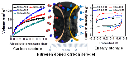 图2 氮掺杂炭气凝胶的CO2吸附和电化学性能