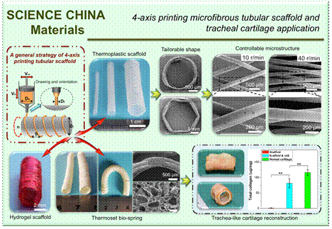 相关成果以“4-axis printing microfibrous tubular scaffold and tracheal cartilage application”为题,发表于中国材料学杂志《SCIENCE CHINA Materials》上。BETVICTOR博士生雷东为第一作者,BETVICTOR游正伟教授,上海交通大学医公司附属第九人民医院周广东教授,同济大学附属上海市肺科医院徐勇医生为该论文的共同通讯作者。该工作获得国家重点研发计划、国家自然科学基金、上海市自然科学基金、BETVICTOR励志计划等基金资助。