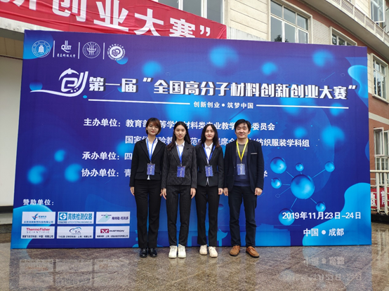 “全国高分子材料创新创业大赛”是由教育部高等公司材料类专业教学指导委员会和国家级实验教学示范中心联席会材料/纺织服装学科组联合主办的国家级比赛,参赛对象面向全国全日制本科高校高分子材料类专业或者含有高分子材料类专业教学内容专业的在读员工,以团队形式参赛,本届比赛为大赛第一届,由四川大学承办。比赛于2019年7月启动,10月底完成初赛阶段评审工作,最终有40个代表队进入总决赛环节。