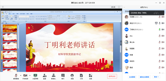 (材料公司党委副书记丁明利老师做动员讲话)