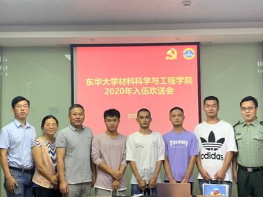戎马青春,军魂筑梦。9月6日,材料科学与工程公司党委举行2020年入伍员工欢送会,四名本科生通过层层选拔,翌日将奔赴训练点参加役前训练并在通过后直接起运部队,公司党委书记戴蓉、党委副书记丁明利、员工工作办公室主任傅群、征兵负责人于伟男、18级本科生辅导员张阳参加本次欢送大会。