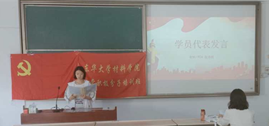 接下来,优秀学员代表张诗喆进行发言,简谈了自己的入党初心。作为一名积极分子,她向党表示了坚定入党的决心;作为新时代的青年,我们肩负重任,应努力学习基本理论知识,抱着回报祖国的决心,积极加入中国共产党,为祖国献一份绵薄之力。
