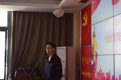 材硕203班沈美红同学分享了她对脱贫攻坚的认识,在脱贫攻坚表彰大会上的模范人物身上,她感受到了优秀共产党人为了人民群众的幸福不怕苦、不怕累的精神,这些共产党员丝毫不考虑自身利益,只为谋求人民群众的利益。特别是,进入公司后,她还了解到公司对口支援云南盐津的情况,更加意识到,原来脱贫工作就在我们身边,可以从身边的小事做起,在服务师生的过程中体现先锋模范作用。