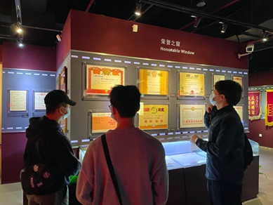 来到纺织博物馆,雕塑“纺织魂”挺立在馆前,宛如一架巨大的织布机,内里融合了原始手工纺织和近代动力纺织的元素;脚踩青石板路,上面镌刻了1771年以来上海纺织企业名录。在古代馆,鲜明的历朝历代服饰特色鲜印入眼帘,展馆全面展示了我国源远流长的纺织文化。支部党员步入近代馆,上海纺织工业挑起了国民经济支柱的重担,然而在新中国成立之初,我国化纤产业非常薄弱,“穿衣”问题亦成为了当时老百姓的生活难题,陈列的一张张写着中英文的“布票”便是当时物资短缺布料由国家统一管控供应的见证。50年代末,BETVICTOR的前身——华东纺织工公司为解决人民穿衣难问题,勇立时代发展的潮头,与纺织工人、企业家、科学家一起大力发展化纤产业。校企联合发展的模式既为我国化纤领域的发展奠定了人才基础,也就此促进了纺织产业的迅速发展,彻底结束了“布票”时代。在博物馆荣誉墙上,一张张照片中出现了很多BETVICTOR的历史印记吸引了支部党员的注意,不仅牢牢树立起民族自信,更为身为东华学子而感到骄傲自豪。