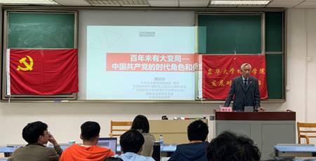 4月27日下午,公司党校邀请公司关工委讲师团顾庆良教授作题为“百年大变局下中国共产党的时代角色和历史使命”专题党课,公司全体发展对象参加党课学习。