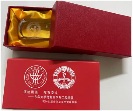 毕业生代表、卓越高分子1701班曹凌云在发言中回顾了四年本科阶段的成长与收获,表达了对公司和老师的感激之情。“褪去初入东华时的青涩与稚嫩,如今愈发的沉稳、自信,我们已准备就绪,去迎接所有的未知与挑战”。曹凌云还与材硕195班卢飞扬代表毕业生为公司赠送礼物——“桃李满园”,祝愿公司桃李满天下。