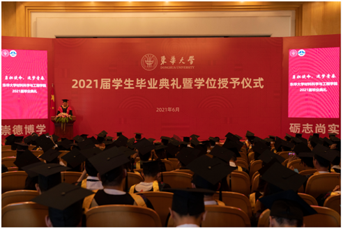 在学位授予环节,公司经理、教授委员会主任朱美芳宣读学位评定委员会决定。伴随着庄严的背景音乐,与会校领导、党政班子成员、教授委员会委员为毕业生颁发学位证书并行拨穗礼。毕业典礼在全场师生合唱《你曾是少年》中圆满落下帷幕。