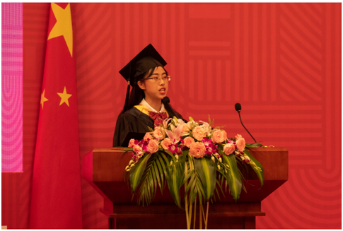 材硕206班张彤作为在校生代表为全体毕业生送上祝福,祝愿毕业生带着学术的智慧、生活的理想,踏上新的征程,开启人生新篇章。