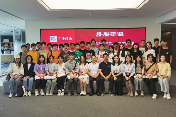 在震坤行总部,师生一同参观了3A楼层的员工餐厅,前台接待大厅和核心办公区域。在交流活动中,企业相关负责人介绍了震坤行工业超市的平台运行模式、产品运营模式、交易平台以及智能化服务相关产品。同学们也和公司相关负责人进行了面对面交流,了解了企业人力资源体系,研发岗、管理岗、职能岗、供应链、销售类等岗位情况,加深了对企业的了解和认识。