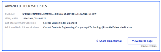 近期,Advanced Fiber Materials杂志正式被SCIE收录,这是继Advanced Fiber Materials被ESCI、CAS等数据库收录后入选的又一国际重要数据库,Advanced Fiber Materials的国际影响力正在快速提升,期刊的发展进入新征程。