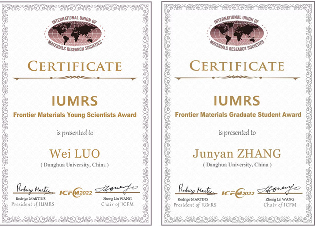 据悉,IUMRS是1991年由美国(MRS)、中国(C-MRS)、欧洲(E-MRS)、日本(MRS-J)等国家材料学会联合发起成立的国际学术组织,旨在促进全球范围内跨学科的材料科学研究和教育事业,目前已有14个会员国家学会,总部设在新加坡。为奖励全球范围内在材料基础与应用研究做出重要贡献和影响的青年科学家并鼓励在前沿材料研究领域中表现优秀的研究生,IUMRS每年在全球前沿材料领域中评选4名资深科学家,6名青年科学家和12名研究生,分别授予“IUMRS前沿材料科学家奖”、“IUMRS前沿材料青年科学家奖”和“IUMRS前沿材料研究生奖”。