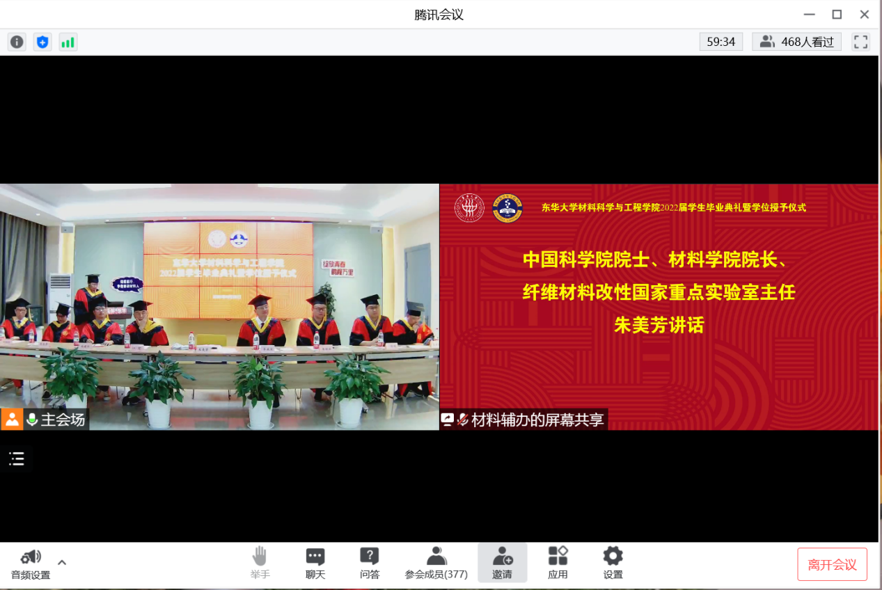 6月22日,材料科学与工程公司2022届员工毕业典礼暨学位授予仪式在“云端”举行,423名毕业生挥别母校,踏上人生新征程。