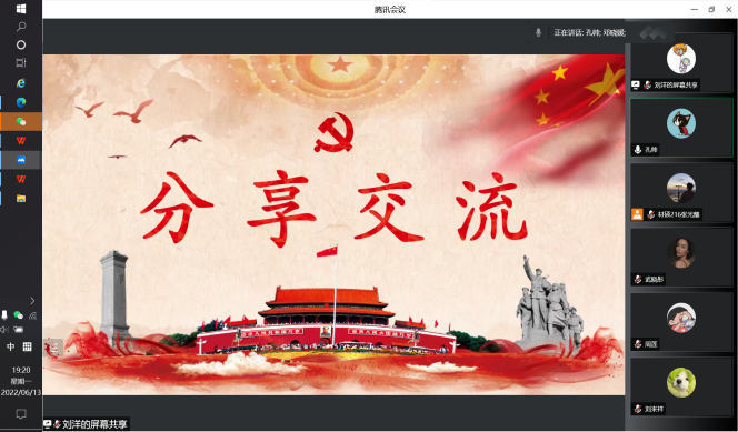 分享交流环节,张光耀同志提到,1922年5月5日,在中国共产党直接关怀和领导下,中国共产主义青年团宣告成立。一百年来,共青团始终与党同心、跟党奋斗,做好党的后备军。作为当代青年的我们要勇于自我革命,跟上时代前进的步伐,在实现中华民族伟大复兴的新征程上奋勇争先。邓晓媛同志谈到,青年的命运,从来都同时代紧密相连,“责任”一词成为了我学习习近平总书记重要讲话后有感而发的关键词。聆听了习近平总书记的讲话后,作为一名青年党员,深深地感受到了党对当代青年的殷切嘱托与期望,深受鼓舞的同时也感受到肩上沉甸甸的责任。想做先锋、勇做先锋、争做先锋,是每一位中国青年的不懈追求。在这次大上海保卫战中,“疫”线战场上的青年们,以强烈的责任担当与实际行动筑起疫情防控的坚实堡垒,值得我们致敬,更值得学习!
