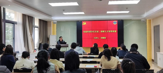李耀刚教授就“构建和谐师生关系,保障人才培养质量”做了专题分享,李教授以自身实例谈起,指出作为老师应该“爱科研,重教学”,与员工建立良好的师生关系,做到爱生如子、知无不教。作为大学老师,应该在注重自身能力建设的同时,做到高标准、严要求地培养人才。