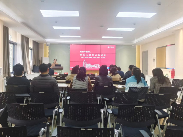 接着,校心理健康教育与咨询中心主任曹宁宁就“师生心理特点与成长”做了专题分享,曹老师指出老师要解决员工的心理问题,首先要正视和解决自身的心理问题,再从“解决问题,激活身体,经营关系,纾解情绪”四部分帮助员工,培养身心健康的新时代材料人才。