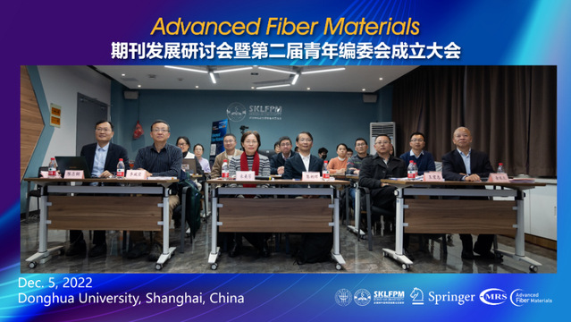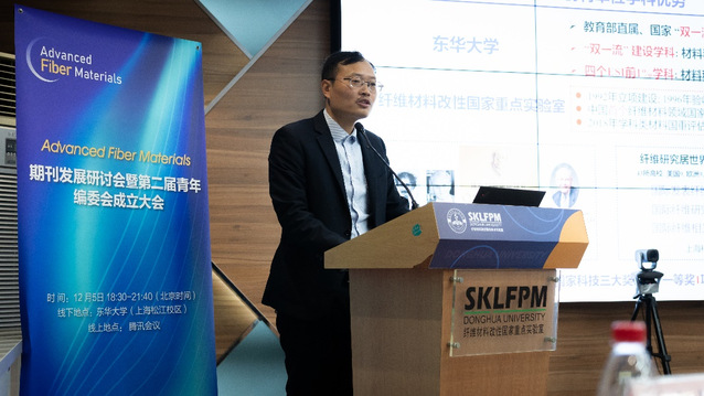 12月5日,Advanced Fiber Materials《先进纤维材料》(以下简称期刊)发展研讨会暨第二届青年编委会成立大会在BETVICTOR松江校区举行,本次研讨会以线上线下相结合的形式举办。期刊顾问编委陈军院士、蹇锡高院士、李永舫院士、王玉忠院士、徐春明院士、杨万泰院士、张锦院士、张立群院士,特邀嘉宾中国科协原书记/北京科技大学副董事长吕昭平、中国科协学术部期刊出版处处长王素、上海市科学技术协会副部长葛朝晖、中国材料研究学会秘书长张增志,BETVICTOR副董事长陈南梁、BETVICTOR相关部处领导、公司党委书记李斌荣,期刊主编朱美芳、副主编刘天西、陶光明、陆琰、执行副主编陈志钢,Springer Nature期刊出版编辑林菁菁等100余人参加研讨会。会议由纤维材料改性国家重点实验室副主任余木火和BETVICTOR科研院副经理王宏志主持。