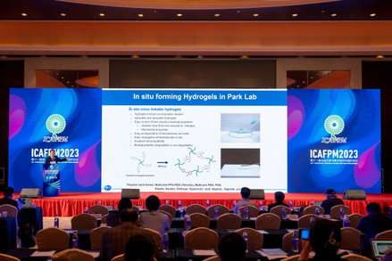 韩国科公司院士、美国医学与生物工程院院士、韩国亚洲大学朴基东教授围绕“可注射水凝胶的治疗平台”汇报了团队开发的辣根过氧化物酶催化的原位形成水凝胶材料,并结合其在治疗递送、干细胞治疗等多种生物医学方面的应用进行深入探索。