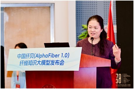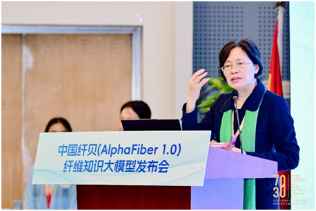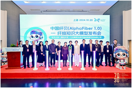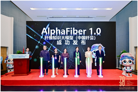 会上,在众多嘉宾见证下,朱美芳、师丽、杨琳、陆琰、端小平、王松林共同上台,点亮了中国纤贝(AlphaFiber 1.0)的启动灯,中国首个纤维材料领域的大型语言模型正式问世。