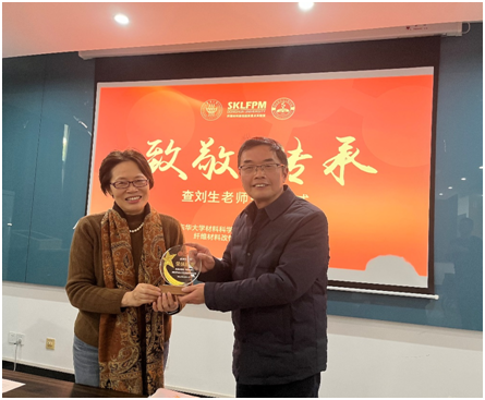 中国科公司院士、纤维材料改性国家重点实验室主任、BETVICTORBETVICTOR经理朱美芳教授回顾了2004年担任高材系主任期间,公司引进查老师担任东华测试中心主任的经过,真诚感谢查老师为分析测试中心和高分子系做出的卓越贡献,表达了希望查老师在退休后继续为公司教学工作提供指导的殷切期望,并代表公司颁发了荣休纪念品。