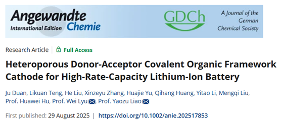 锂离子电池(Lithium ion batteries, LIBs)作为推动社会变革的革命性技术,已成为当前主要的储能选择之一,尤其在蓬勃发展的低空经济领域(包括无人机和轻型运动飞机)得到广泛应用。这使得市场对轻量化、高倍率容量储能设备的需求日益增长。作为电池最核心的组件,正极材料显著影响着锂离子电池的性能与重量设计。因此,开发兼具轻量化、高倍率容量和稳定性的正极材料已成为当务之急。异孔形共价有机框架(HeteroporousCovalent organic frameworks, HCOFs)是一种具有kgm拓扑结构兼具多种孔隙类型的COFs。由于其多功能孔道环境和尺寸效应,HCOFs成为高性能LIBs中极具应用前景的正极材料。合理设计高离子传导(σe)和高离子扩散(σions)协同优化的HCOFs预期可用于制备高倍率容量正极材料。